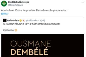 體育資訊09月23日訊 2025金球獎(jiǎng)由巴黎球員登貝萊斬獲,貝蒂斯轉(zhuǎn)發(fā)球員獲獎(jiǎng)的動(dòng)態(tài)并表示:若有必要小編我會(huì)發(fā)十遍,他們還沒(méi)準(zhǔn)備好。