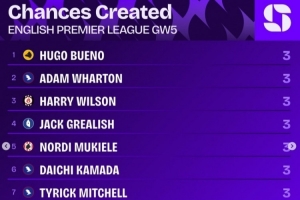 英超第5輪創造機會榜: