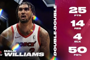 威廉姆斯在2023-24賽季為猛龍隊(duì)出戰(zhàn)了7場比賽。上賽季,他在發(fā)展聯(lián)盟場均能得到14.8分9.1籃板1.3次蓋帽1.2次搶斷。