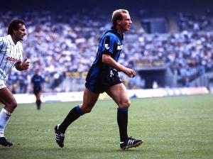 魯梅尼格今日迎來70歲生日。1984年夏他從拜仁轉會至國米,三個賽季(1984年-1987年)中在聯賽、杯賽和歐洲賽事共出場107次,攻入42球。國米球迷銘記他的身體素質、強大力量、領袖氣質以及那些難忘的進球:從聯賽首秀對陣尤文的破門,到德比戰的精彩進球,再到對陣都靈時那記半轉身凌空抽射,以及歐洲杯賽中的諸多精彩破門。身披國米戰袍期間,魯梅尼格展現了全部的天賦。在其輝煌職業生涯中,他曾兩獲金球獎,這更是對其非凡實力的進一步認可。