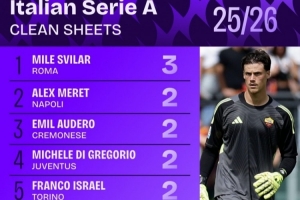 體育資訊9月26日訊 據Squawka的數據統計,在2025年的24場意甲聯賽中,羅馬門將斯維拉爾保持了14場零封,比其他任何門將至少多3場。