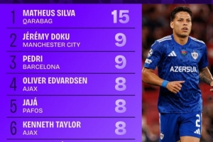 本賽季歐冠被犯規榜:馬修斯-席爾瓦15次第一,多庫佩德里列二三