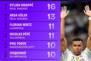 本賽季歐冠創造機會榜:姆巴佩16次第1居萊爾13次第2,維爾茨第3